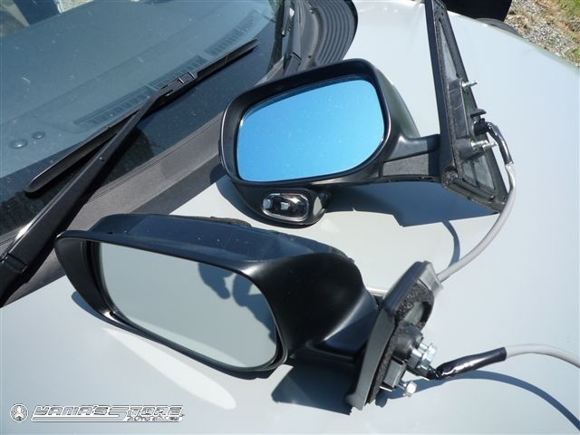 左ミラーの土台の違い・・・奥様用ですので平面ガラスは使わず、角度も日本に側になるように、日米上手く組み合わせます。