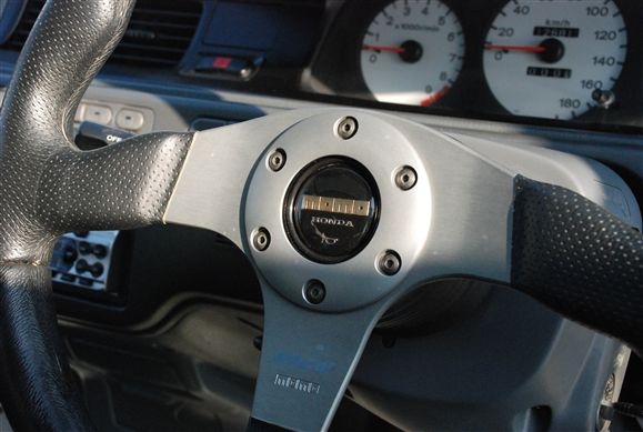 これもアメリカのJDMシーンでよく見かけるJDMパーツ、ホンダ純MOMOホーンボタン。