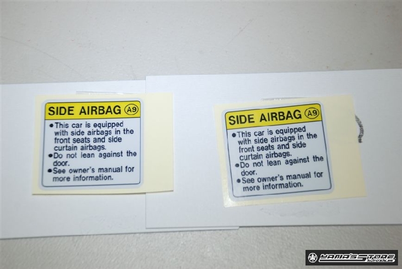 サイドエアーバック コーション左右SET 2枚600円(税別) サイドエアーバック付きの年式はBピラー左右下部に張ります。